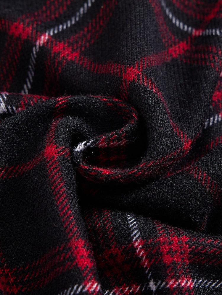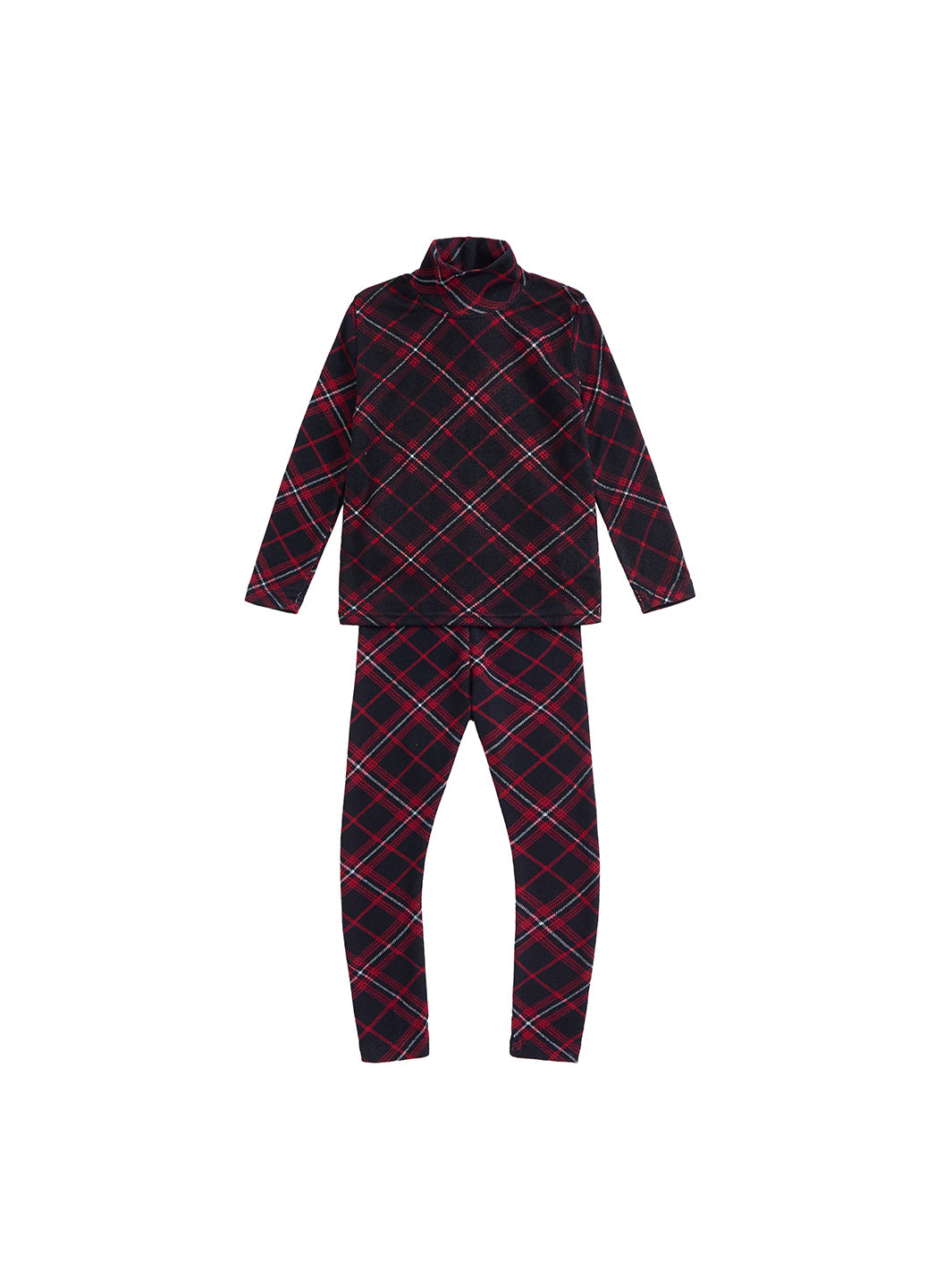 Baby Plaid Mock Neck Set - Burgundy