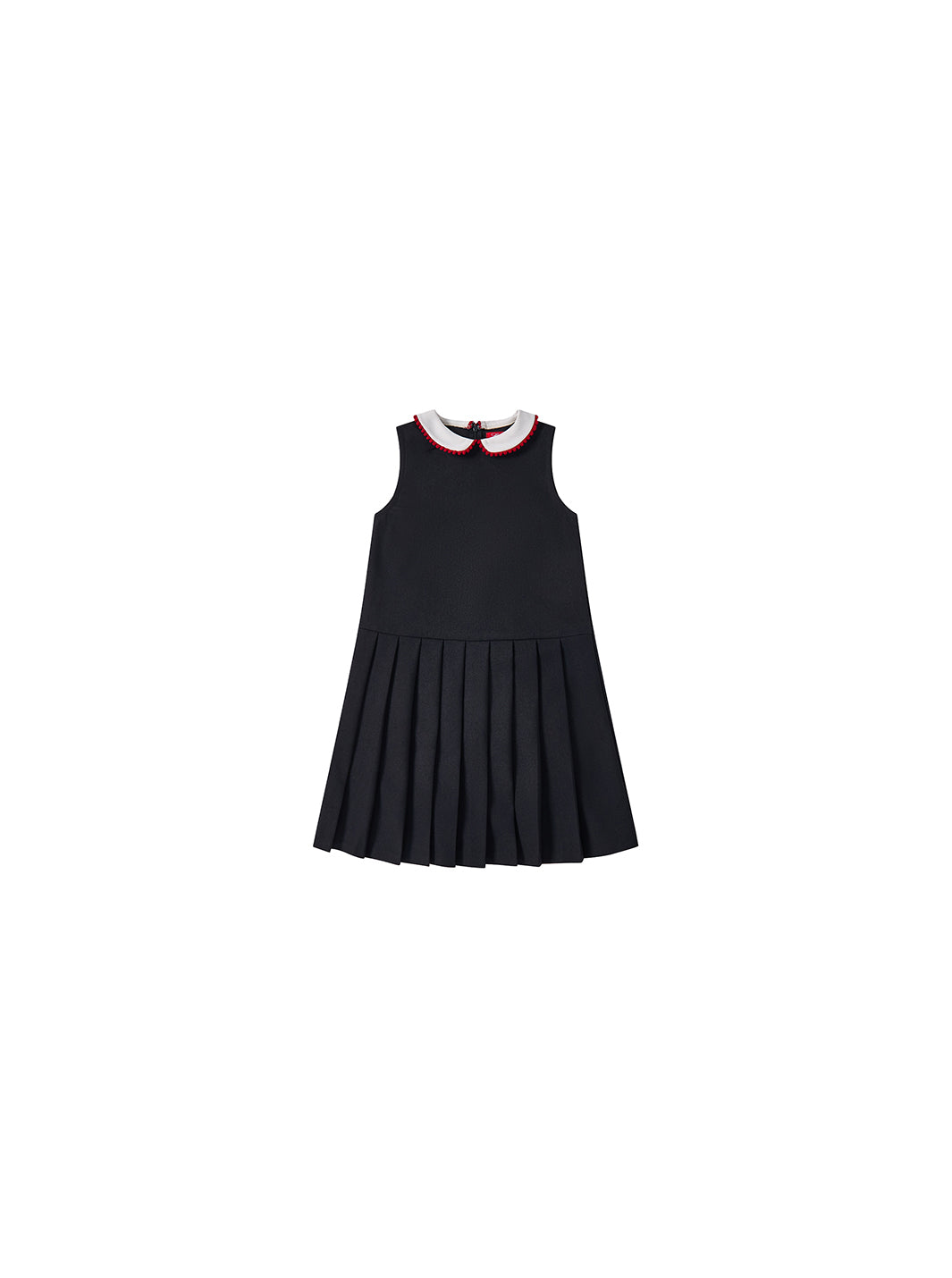 1 Pc. Collar Trim Bottom Pleats Jumper - Black