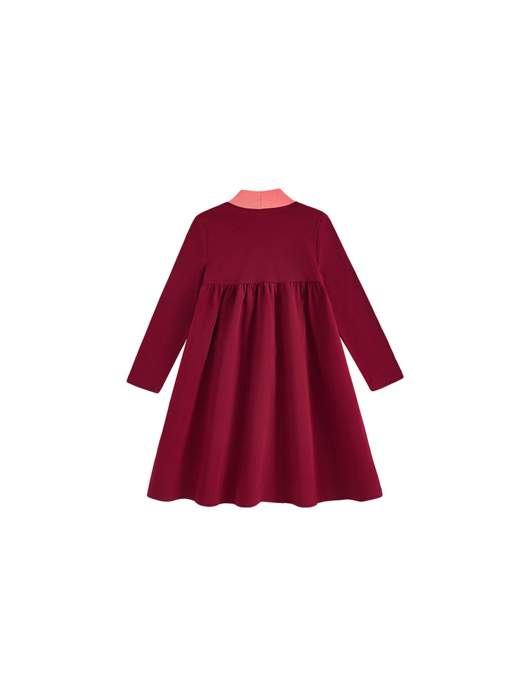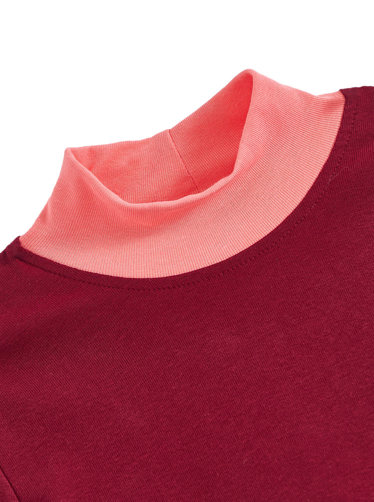 1 Pc. Contrast Mock Neck Dress - Burgundy