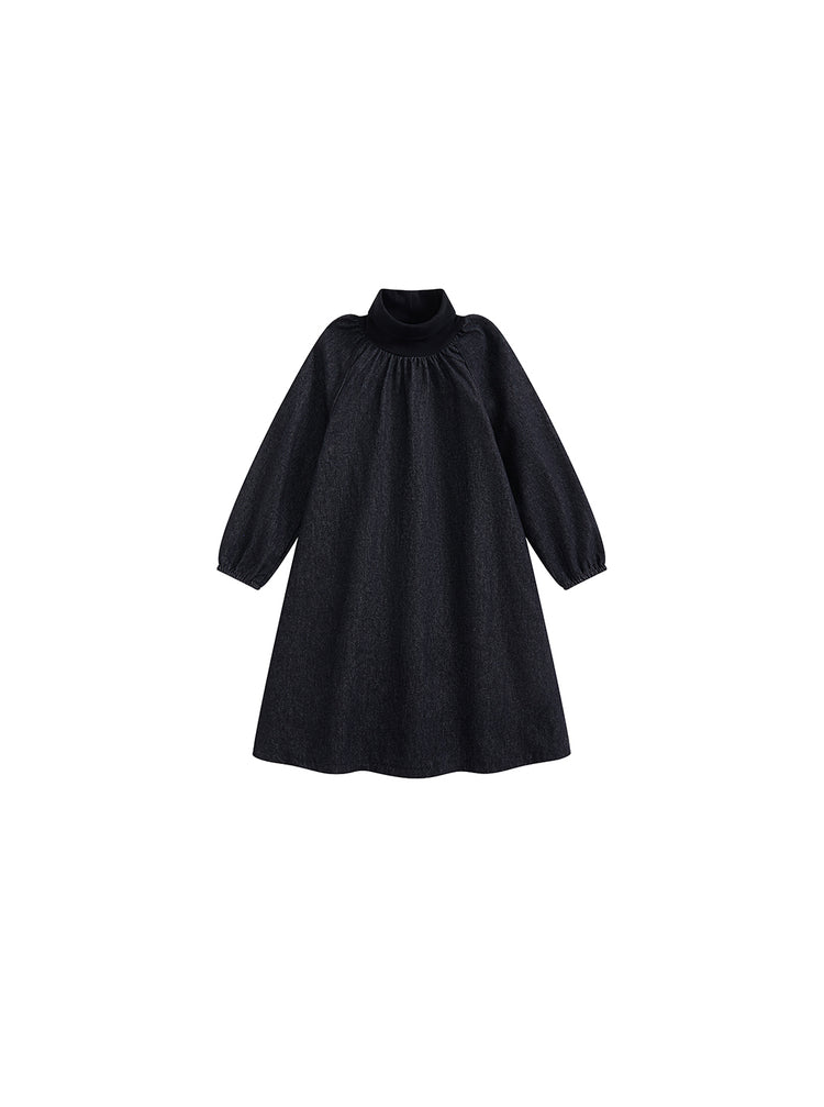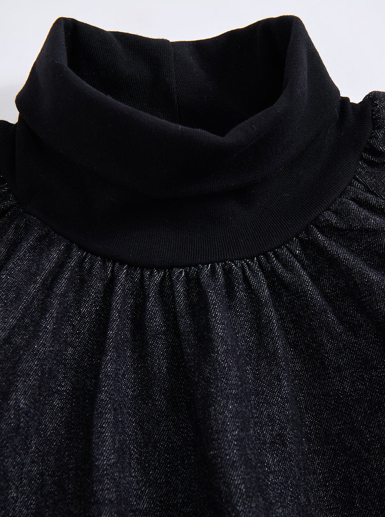 1 Pc. Denim Turtleneck Dress - Black