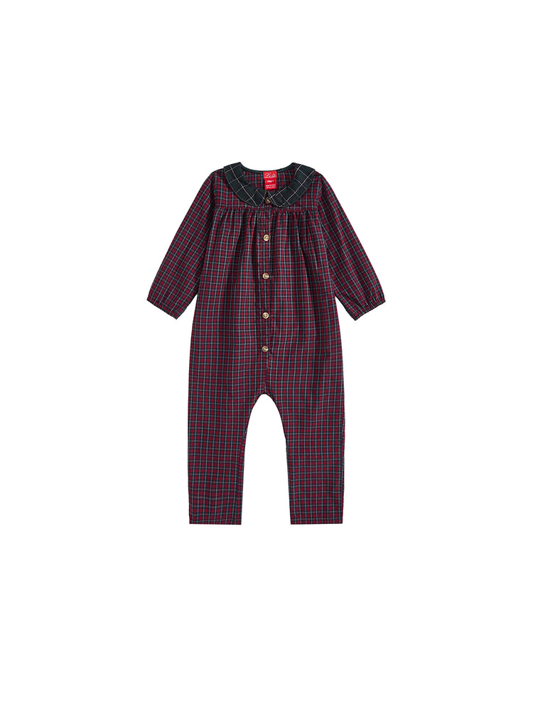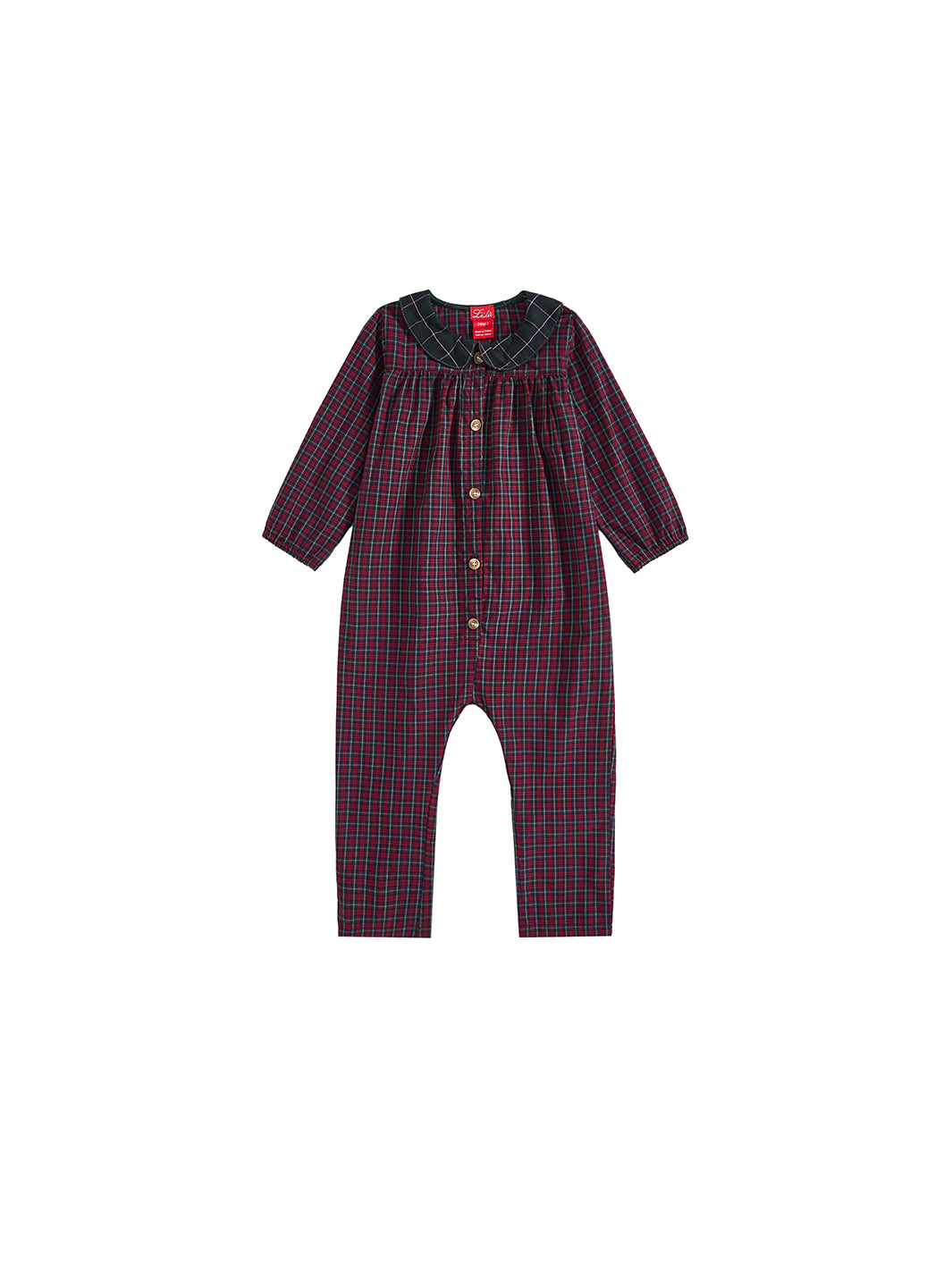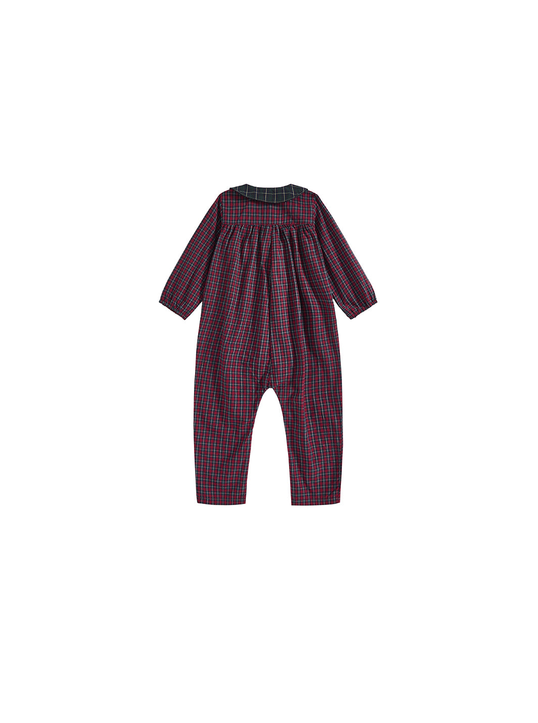 1 Pc. Plaid Collar Overall - Red/Green Plaid