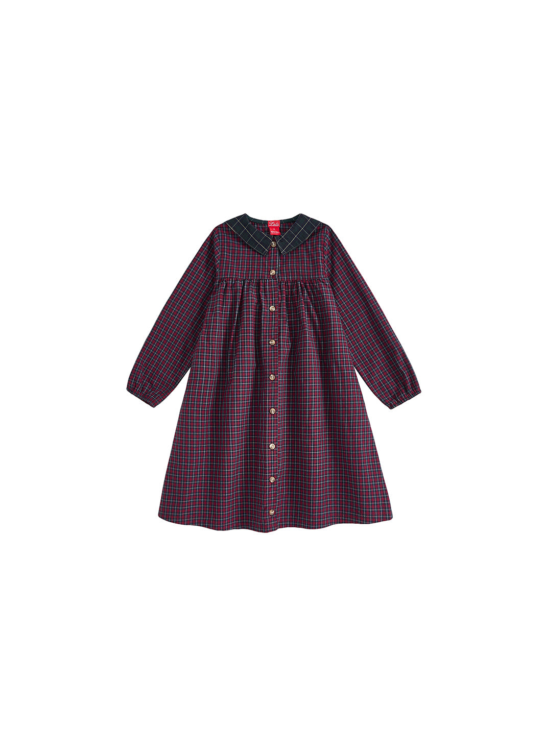 1 Pc. Plaid Sailor Collar Dress - Red/Green Plaid