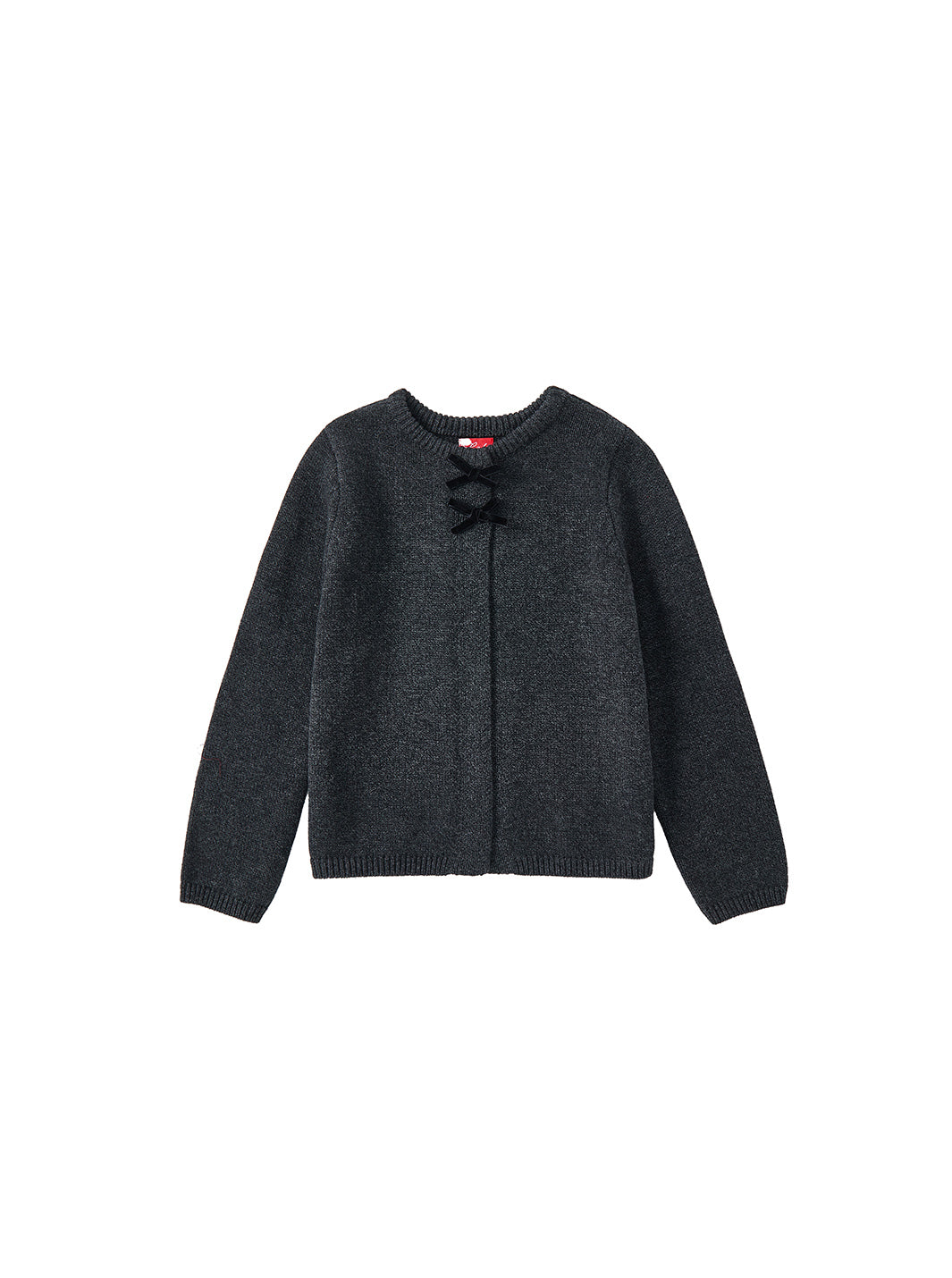 Cardigan Trim Bows Sweater - Charcoal Mélange