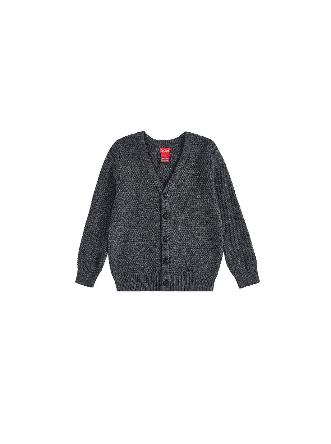 1 Pc. Basket Weave Cardigan - Black Charcoal Mélange