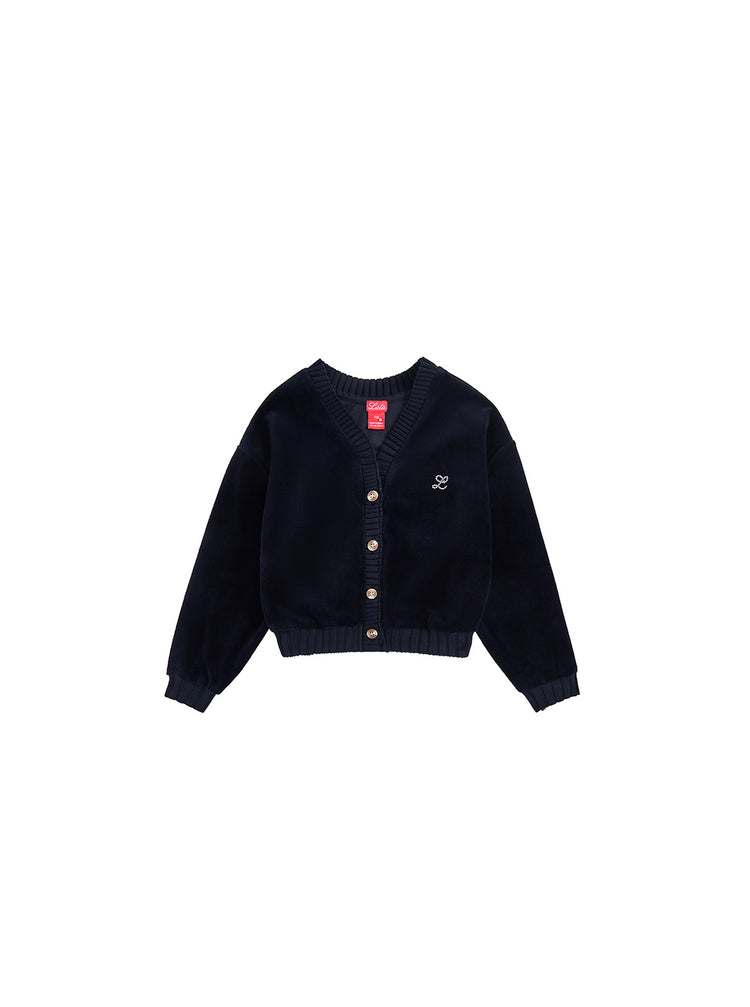 1 Pc. Cardigan Velour Crop Top - Black