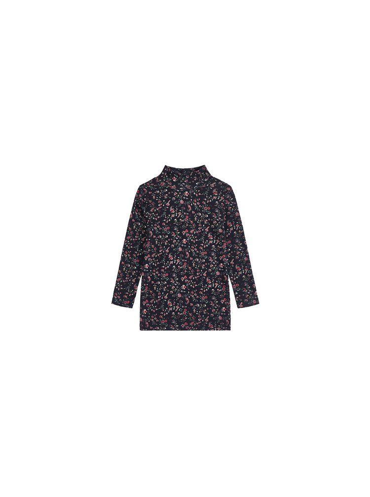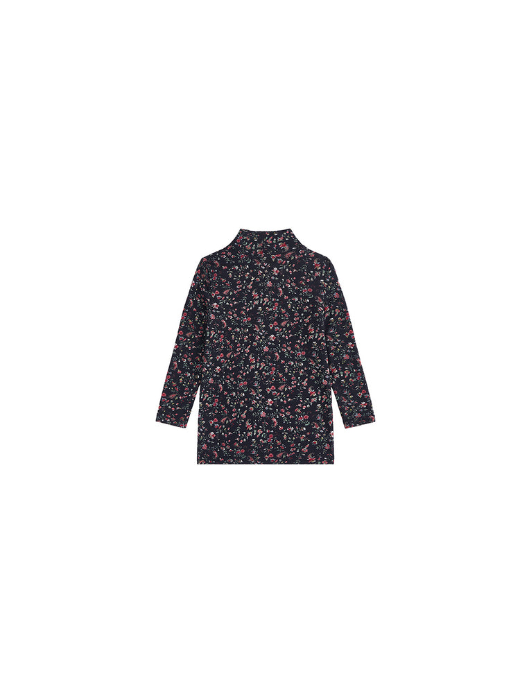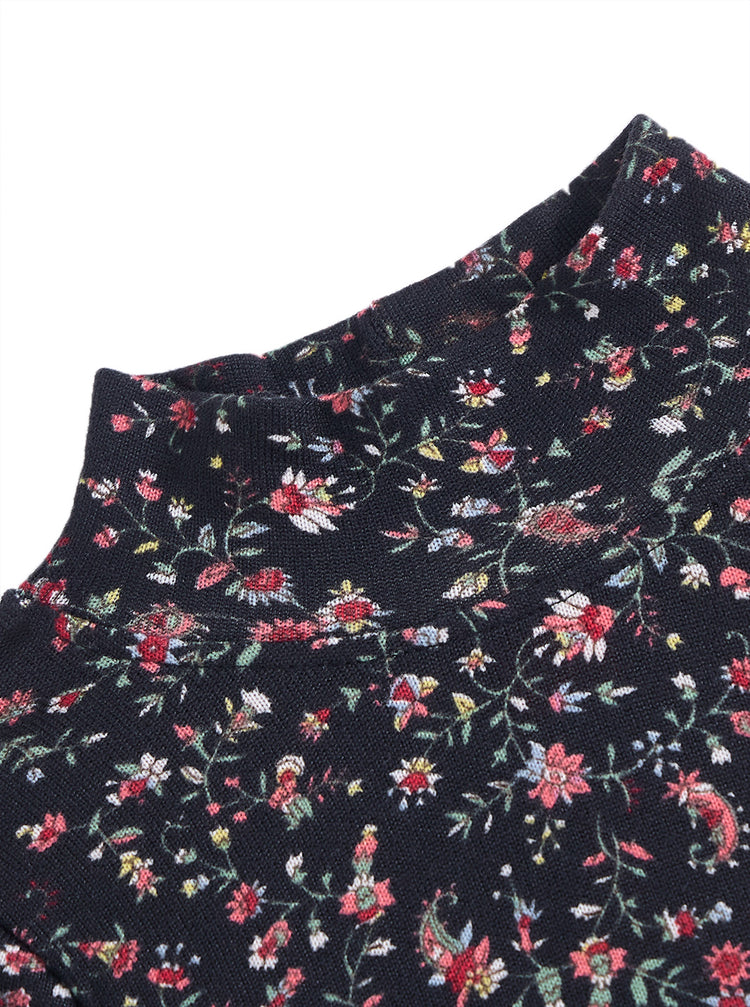 1 Pc. Floral Mock Neck T-shirt - Black/red
