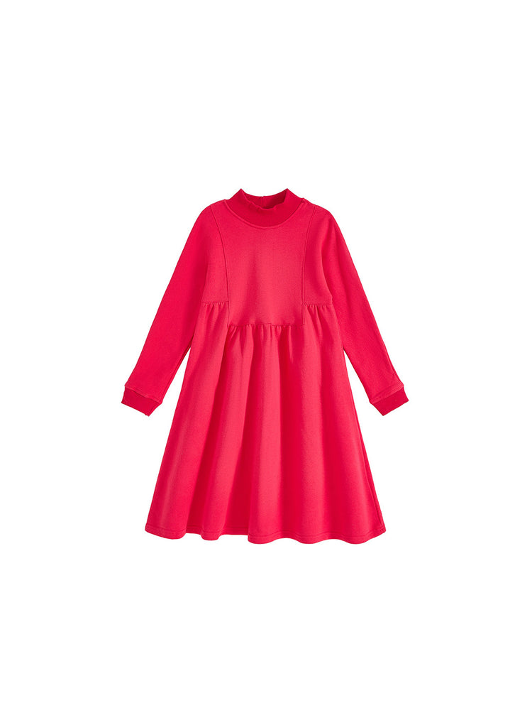 1 Pc. Mock Neck Bib Dress - Hot Coral