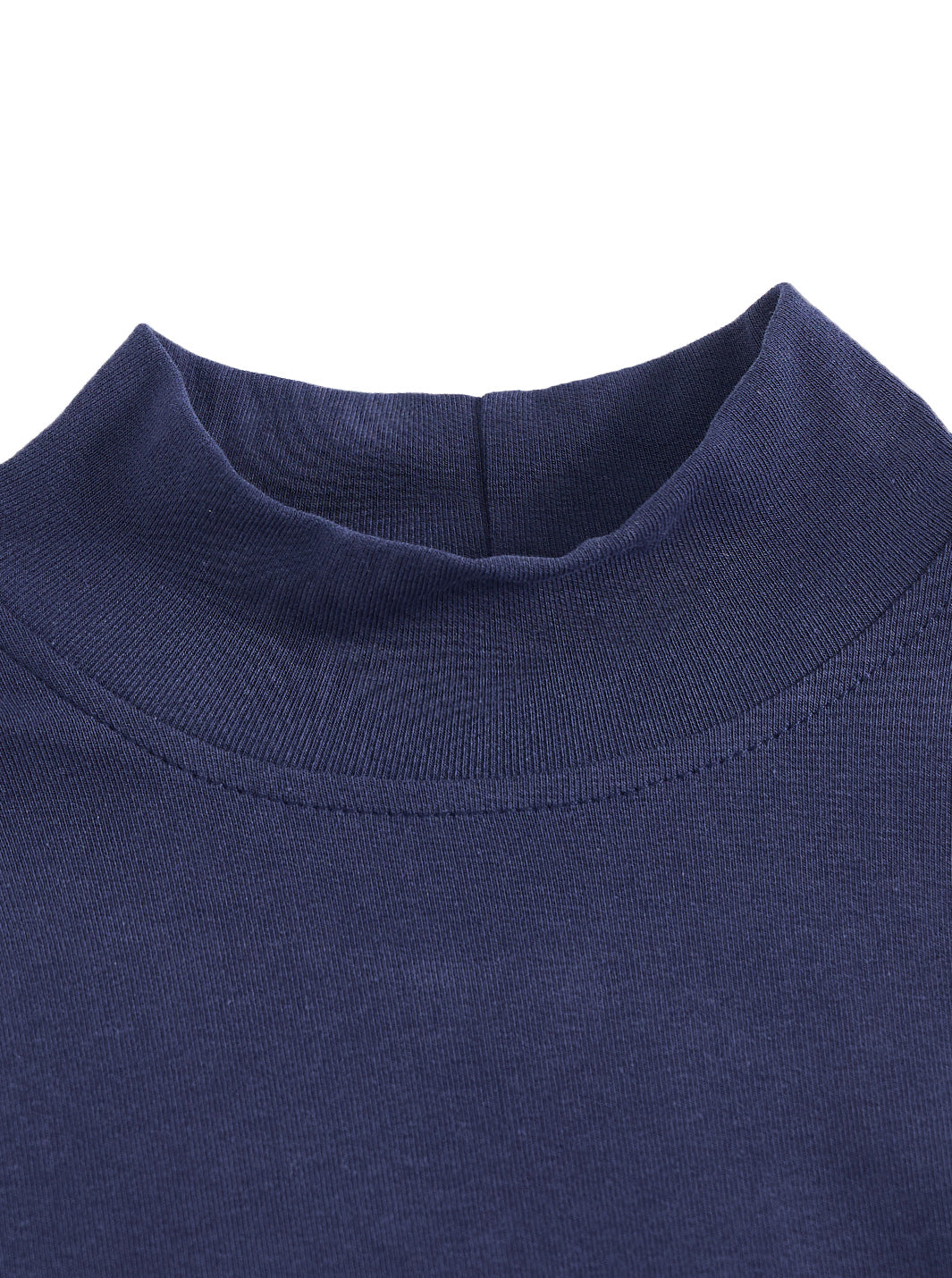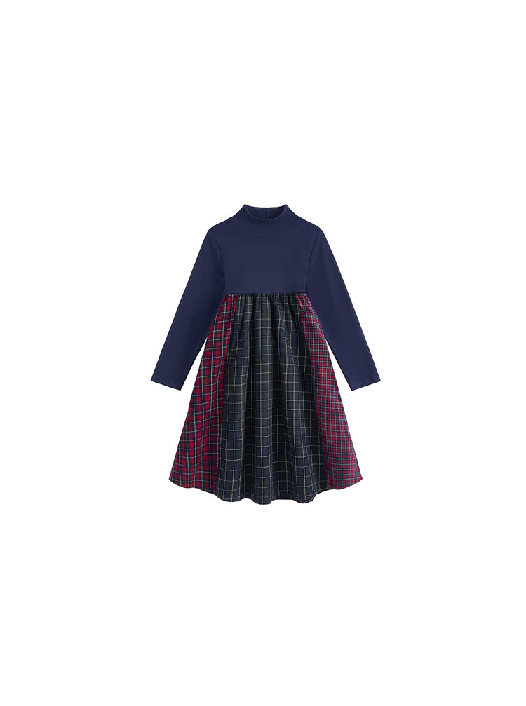 1 Pc. Plaid Mock Neck Dress - Navy Blue