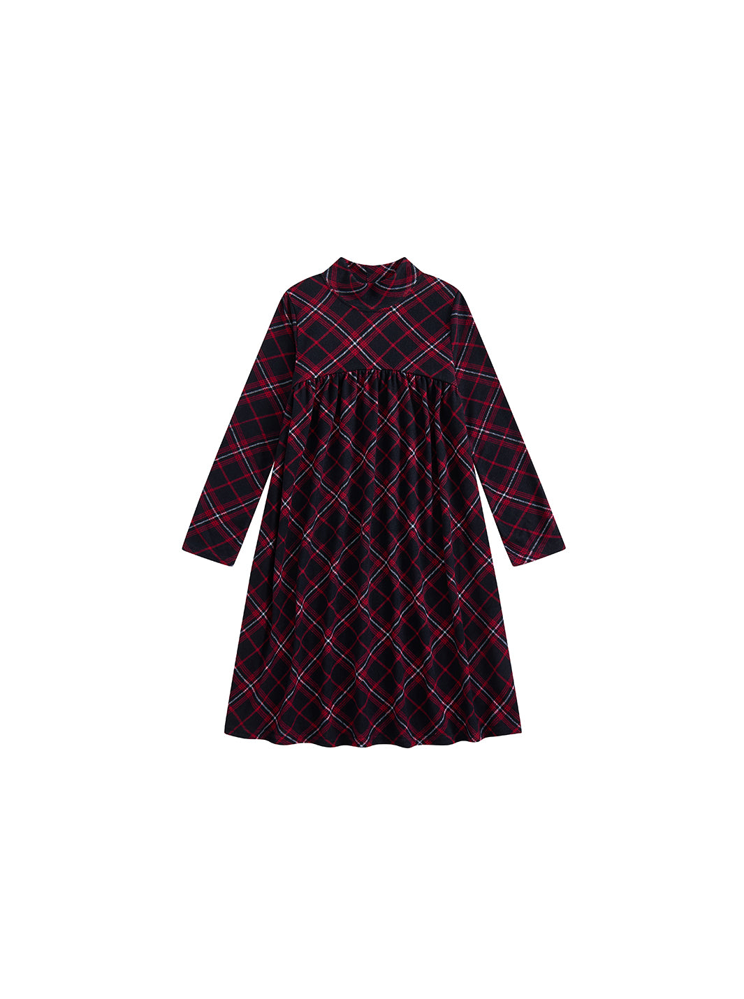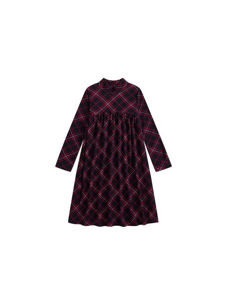 1 Pc. Plaid Mock Neck Dress - Burgundy