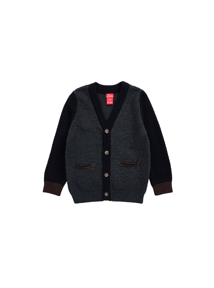 1 Pc. Raised Bubble Knit Cardigan - Charcoal Melange