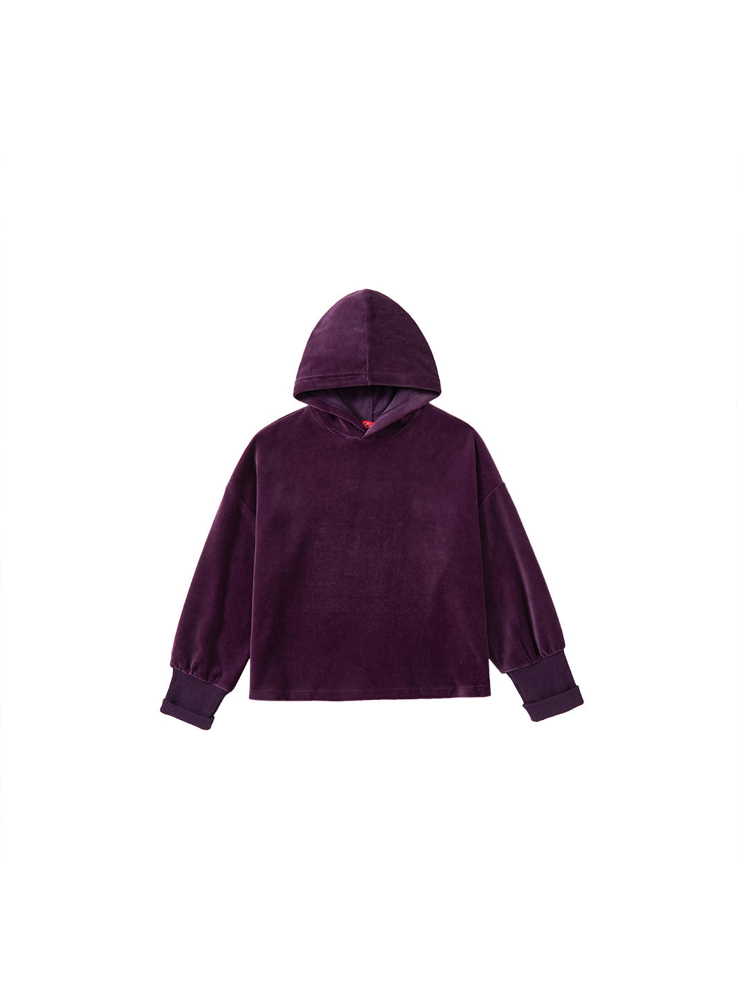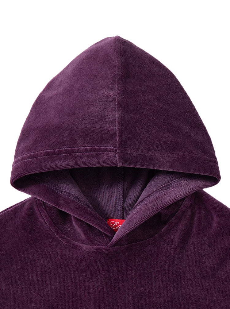1 Pc. Velour Hooded Crop Length Top - Plum