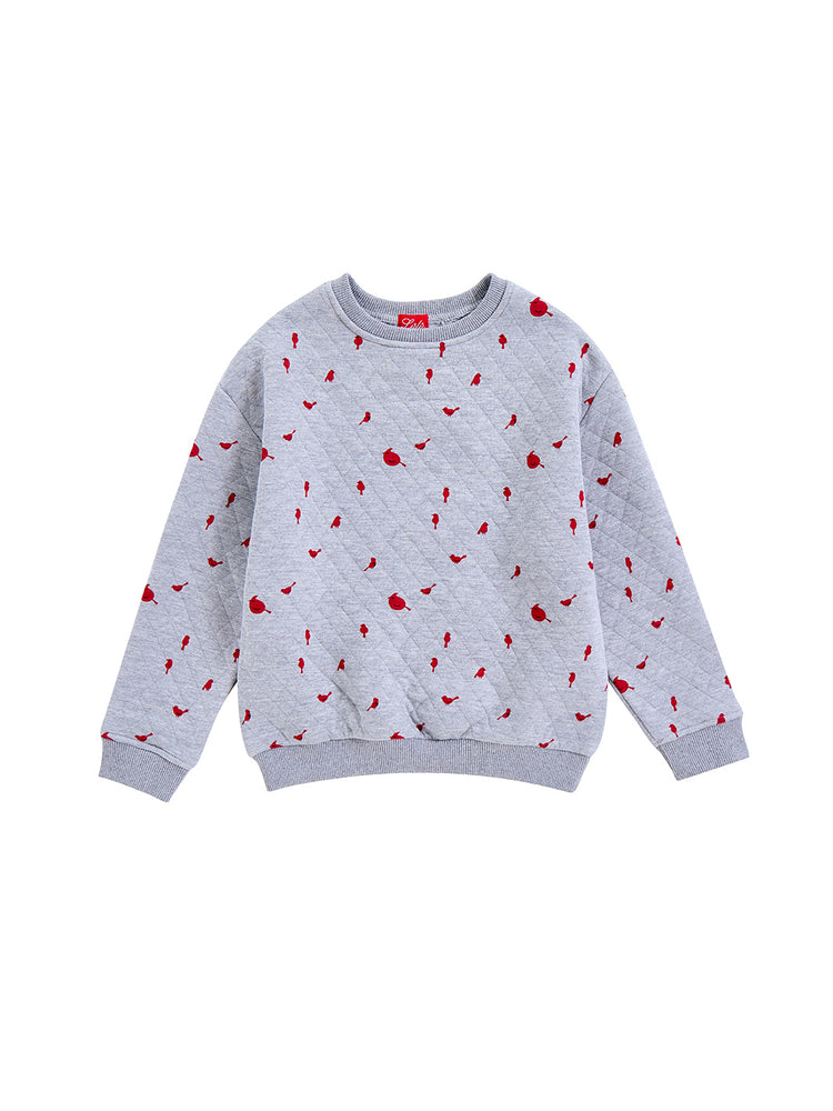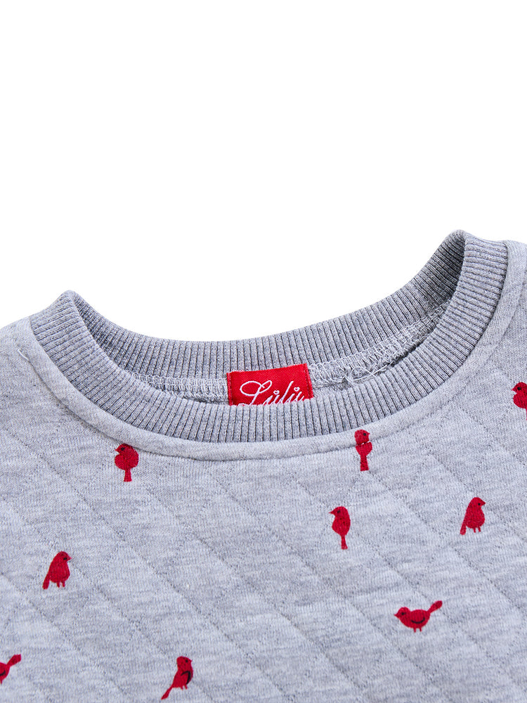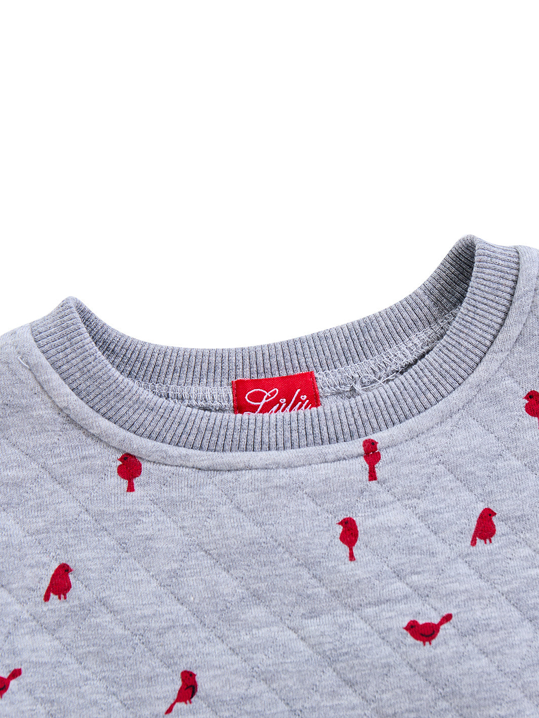 1 Pc. All Over Bird Printed Sweat Top - Grey