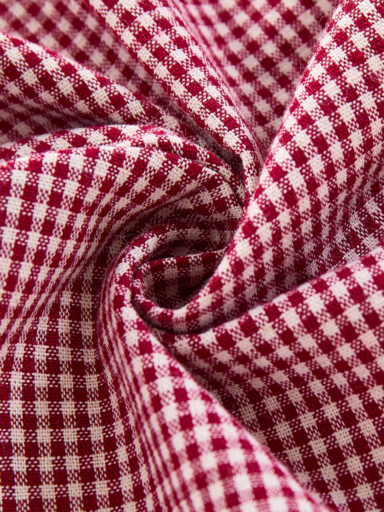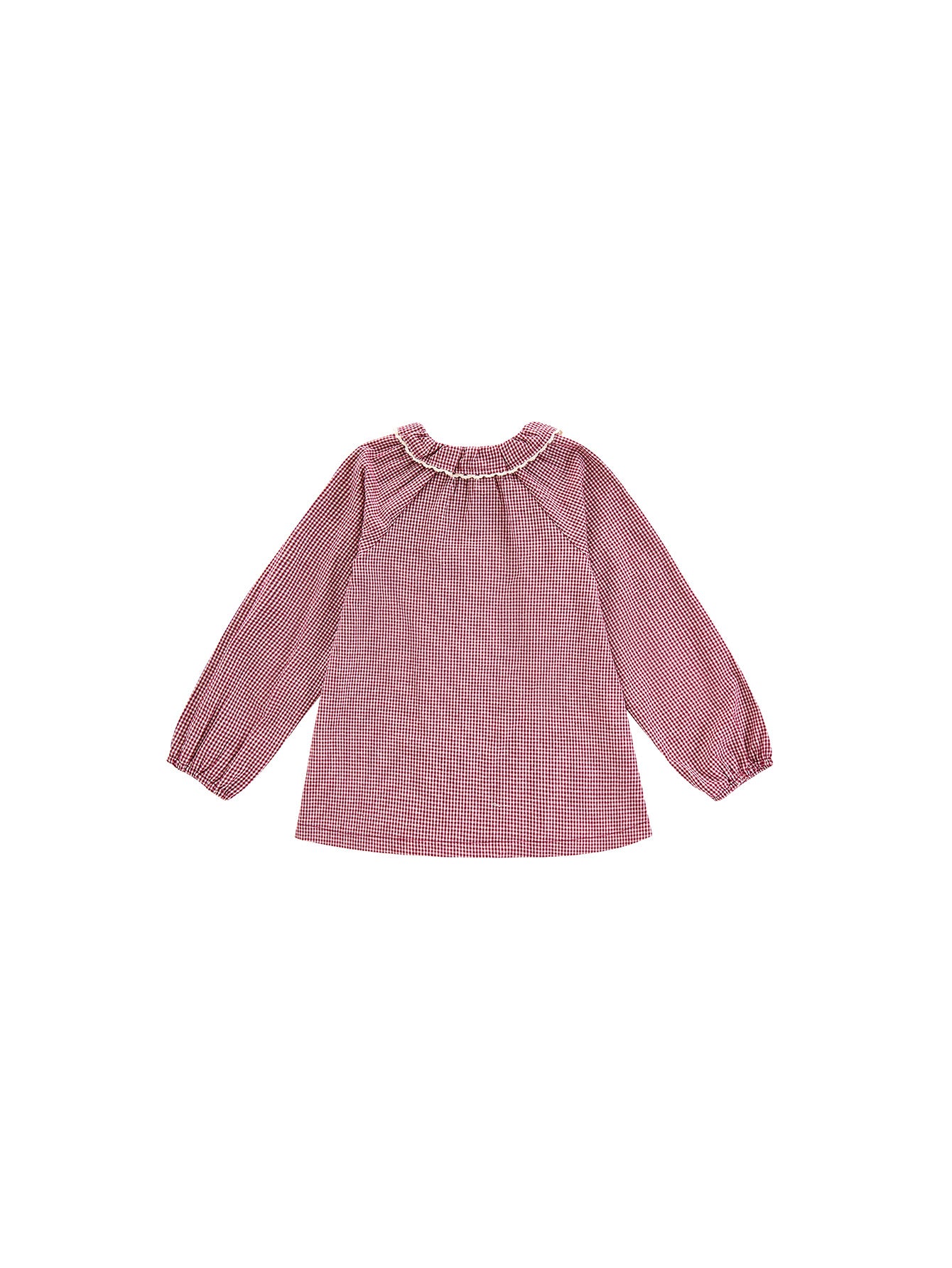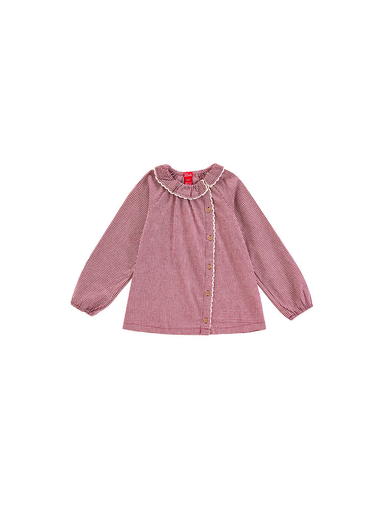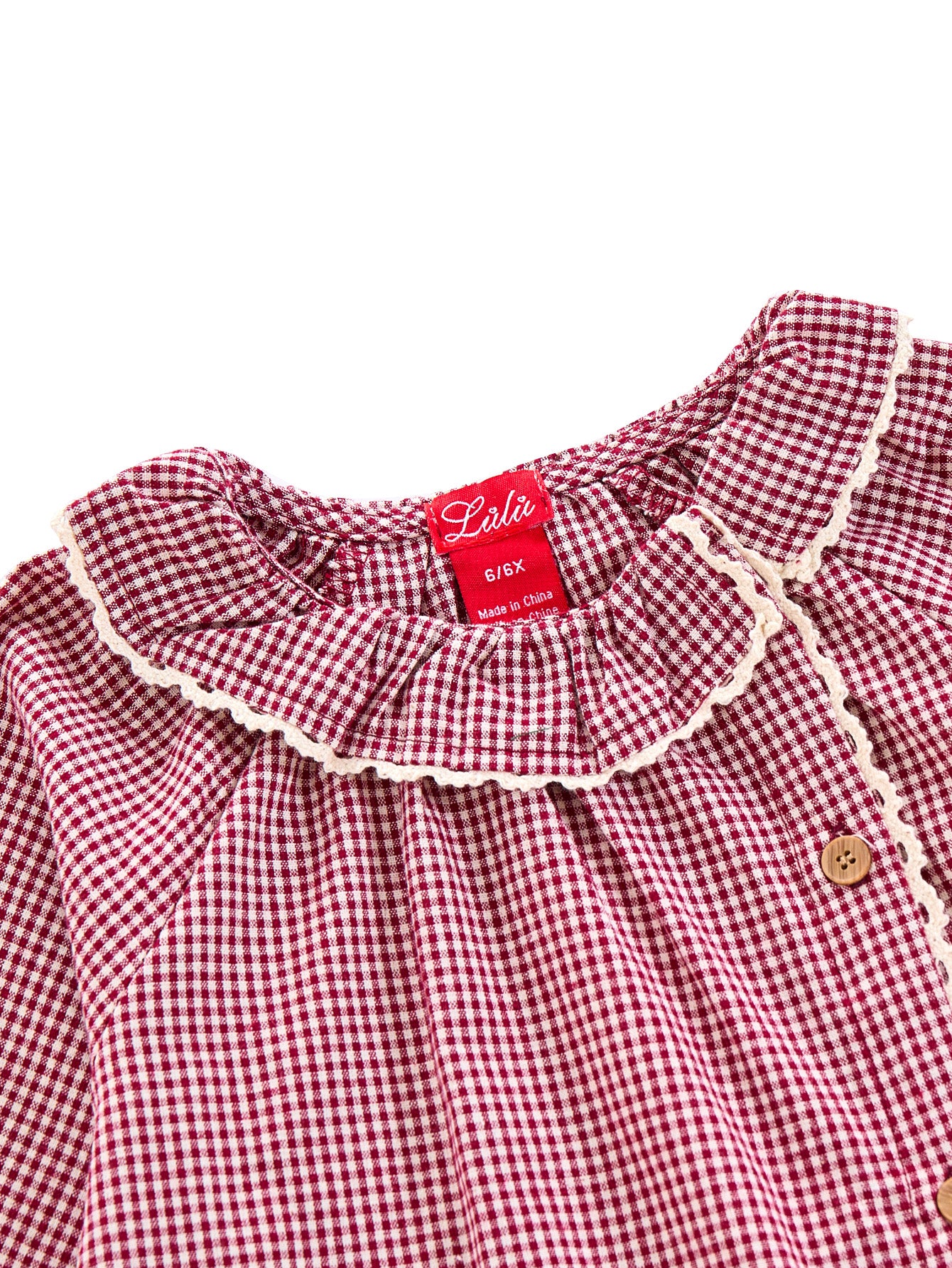 1 pc. Gingham Ruffle Collar Shirt - Burgandy/White