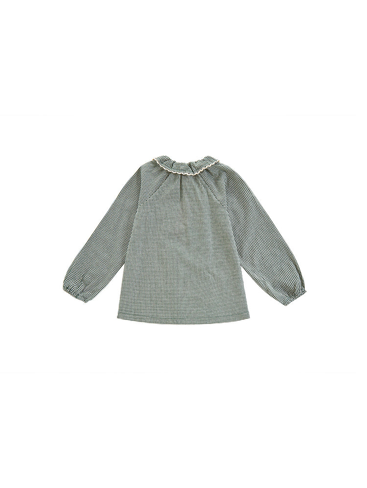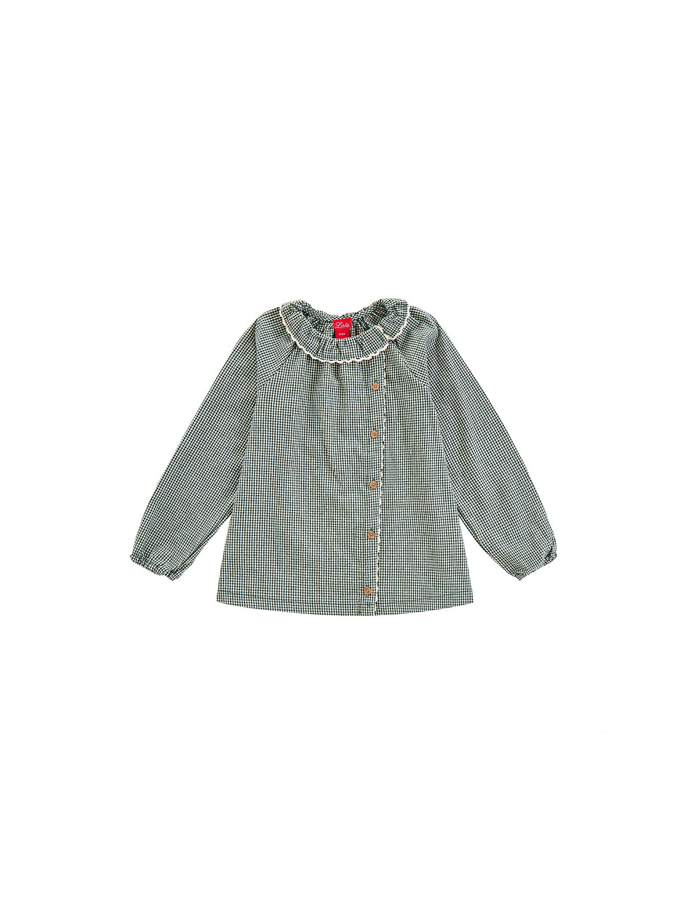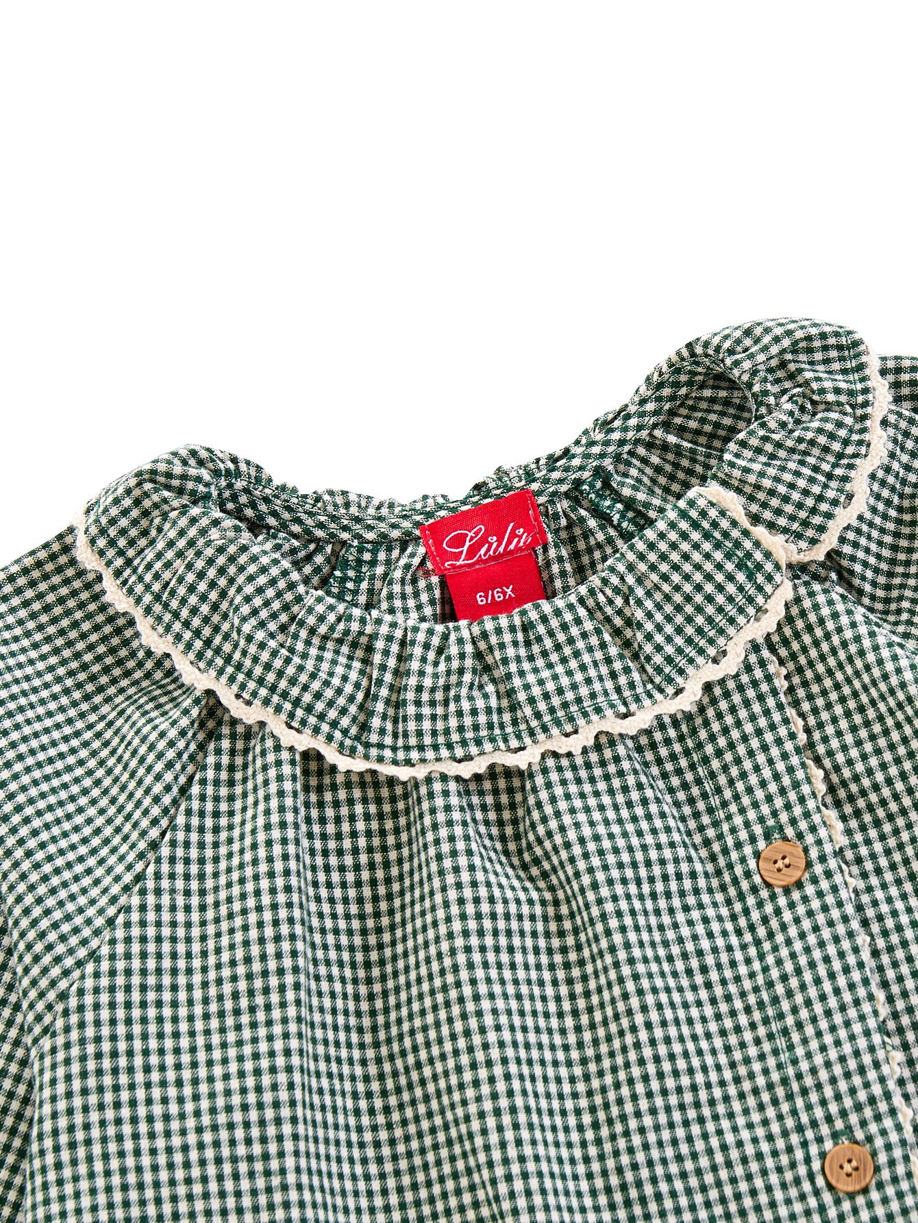 1 pc. Gingham Ruffle Collar Shirt - Green/White