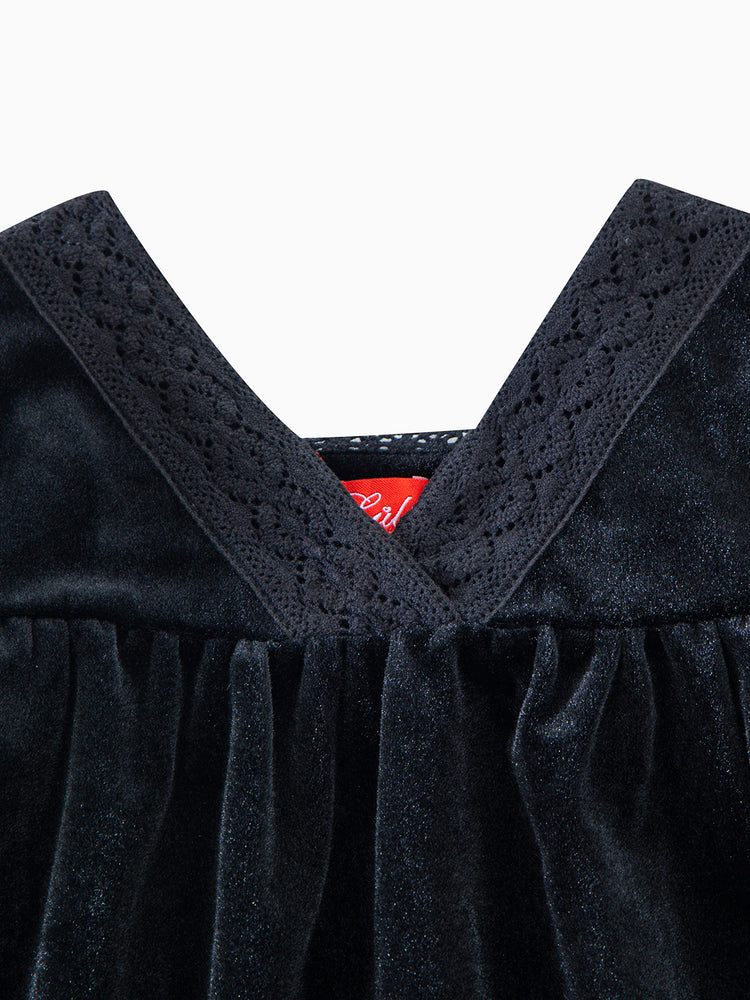 1 Pc. Lace Insert Dress - Black